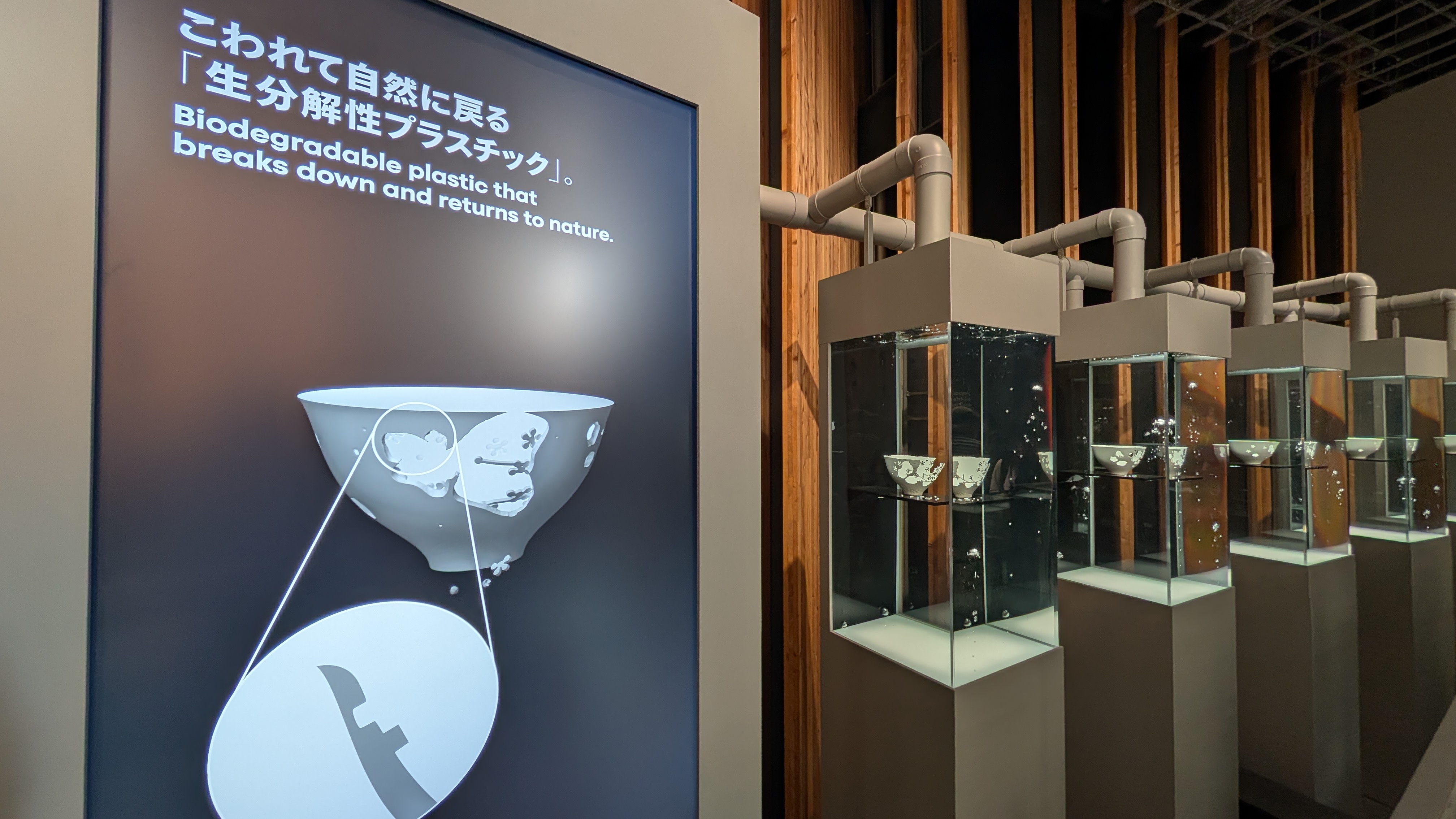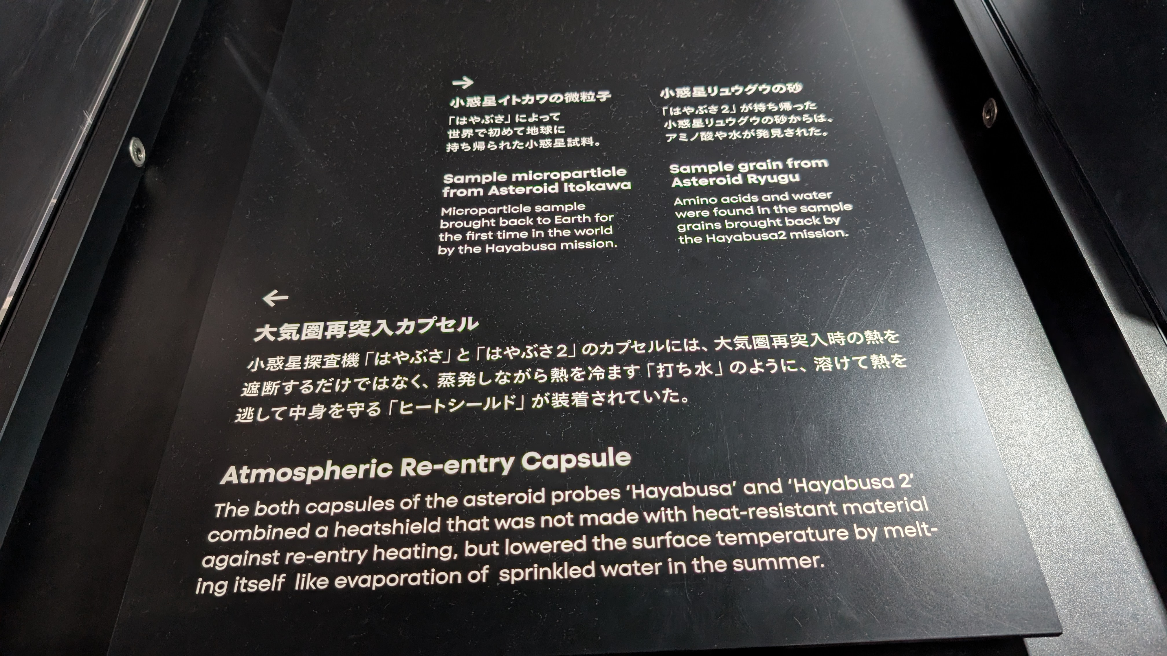 日本館では、発酵食品(発酵による循環社会?)とか、小惑星探査機「はやぶさ」が、イトカワ(小惑星)から持ち帰ってきたものなどを紹介してました。