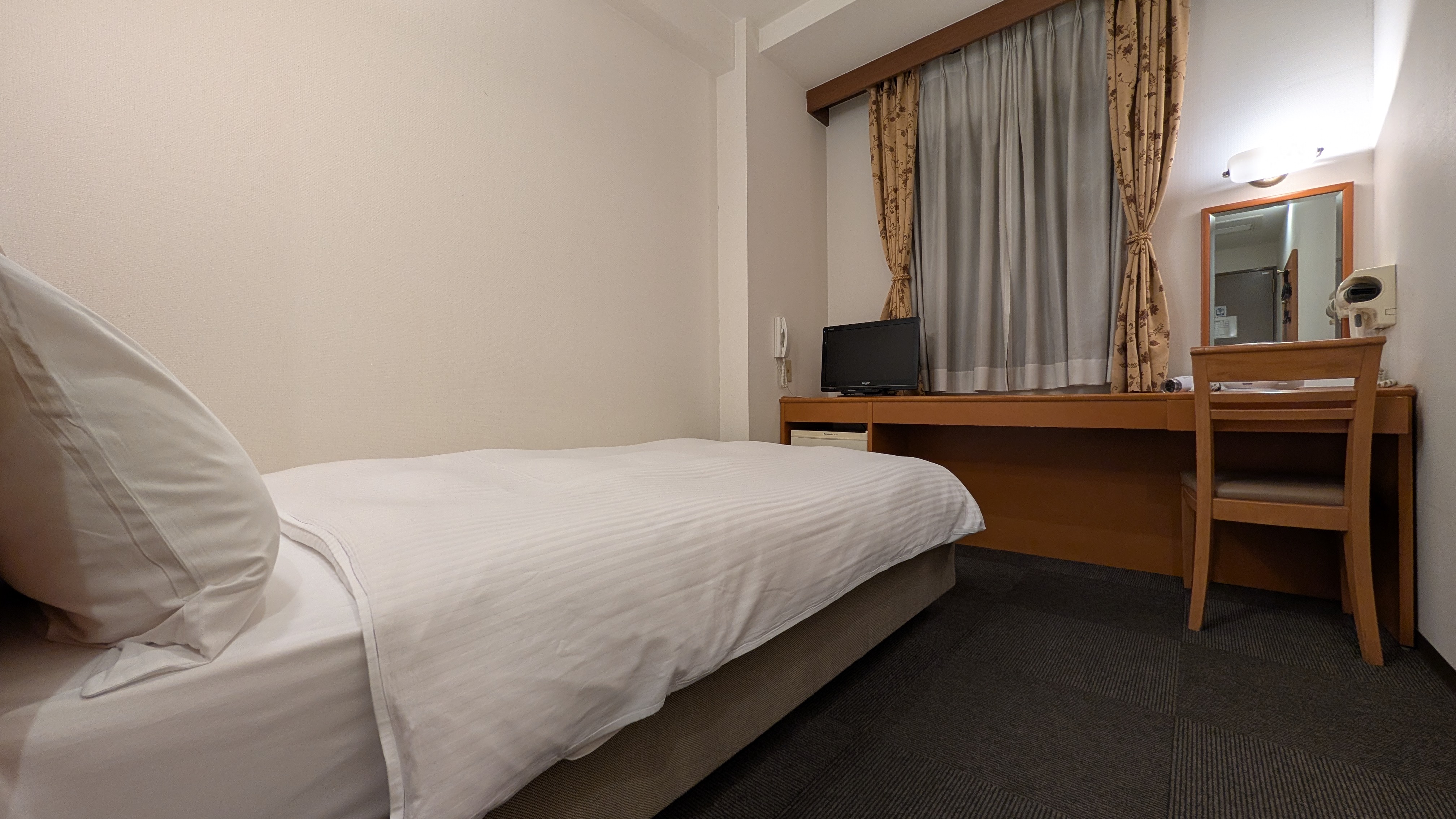 すぐ外が隣のビルの壁のため、景色の写真はなしです。