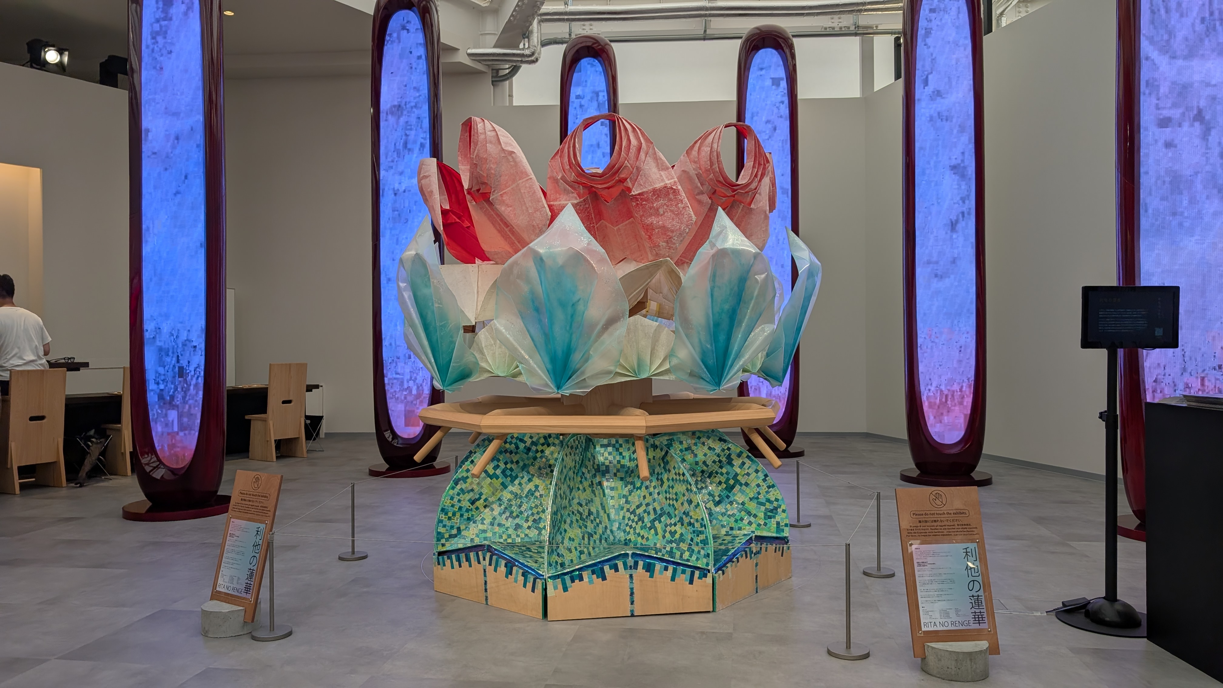 蓮の手作りオブジェ(下の写真)と木の匂いの展示でした。