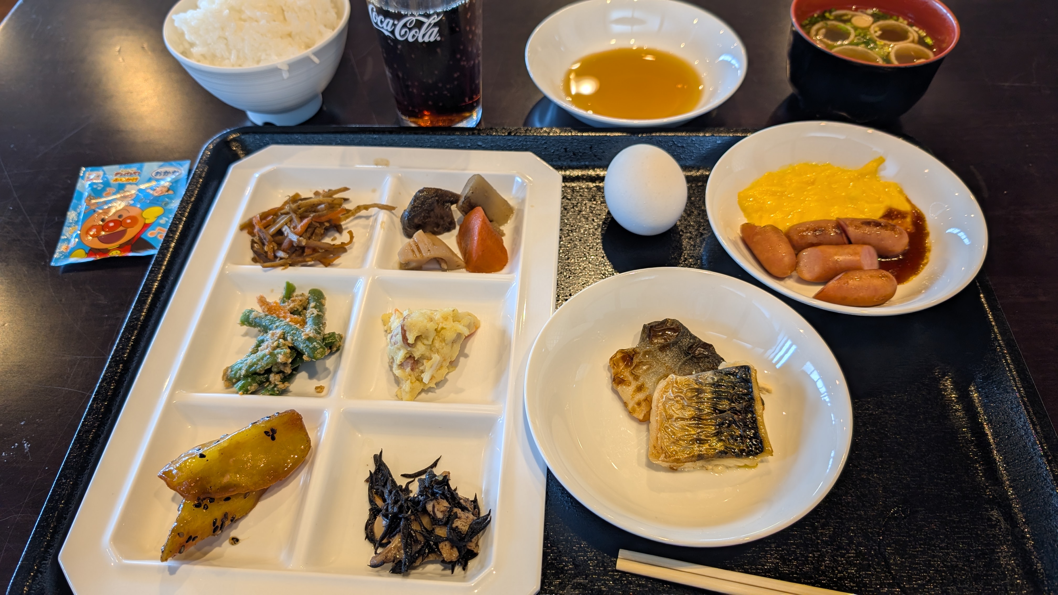 朝食はバイキングかと思ったらセルフサービスでした。