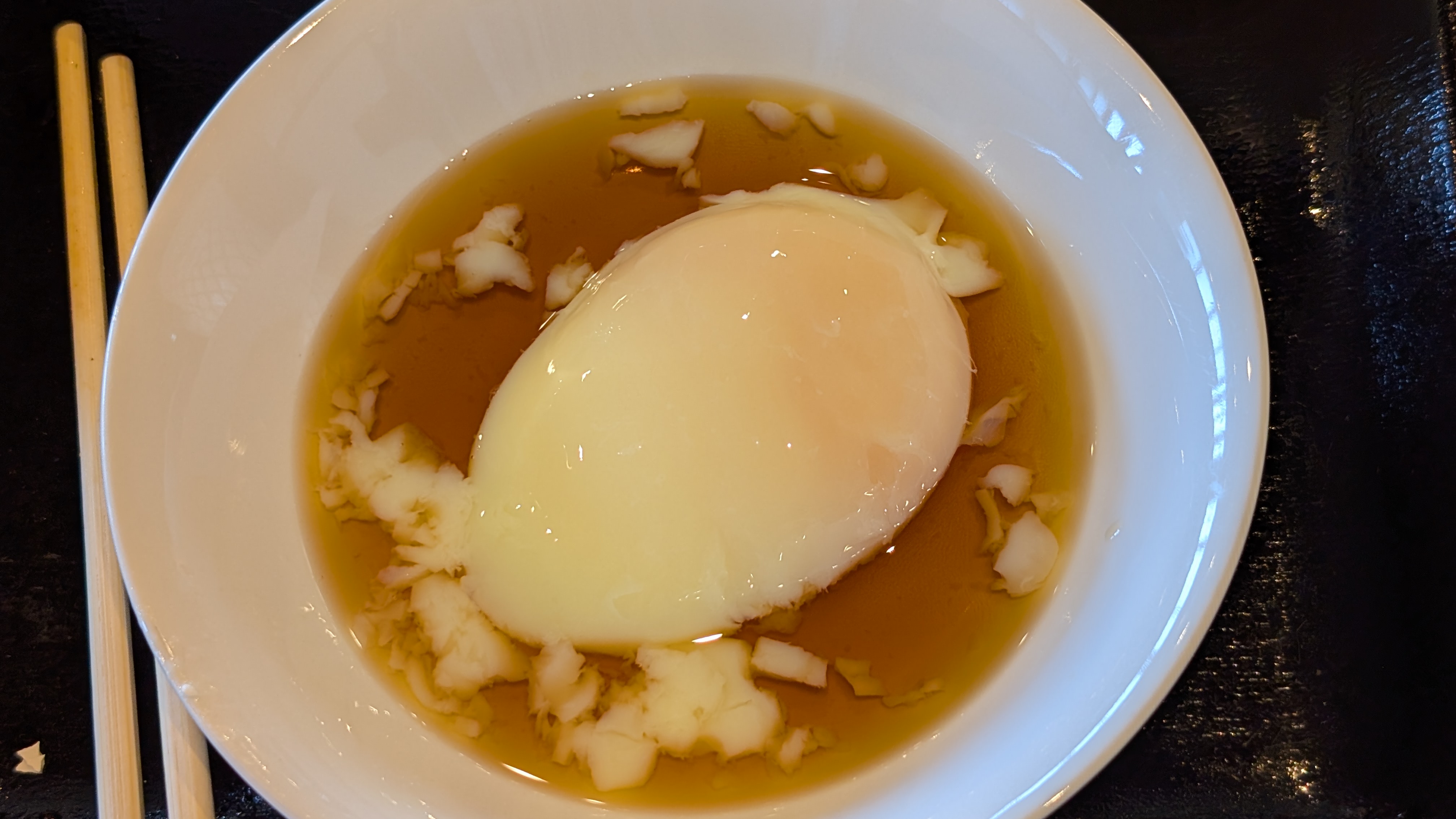 半熟卵には天丼のタレ(出汁)をかけてみました。